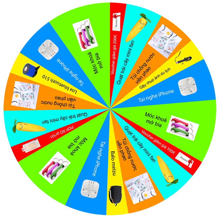Phần thưởng trong vòng quay với số lượng có hạn như sau: