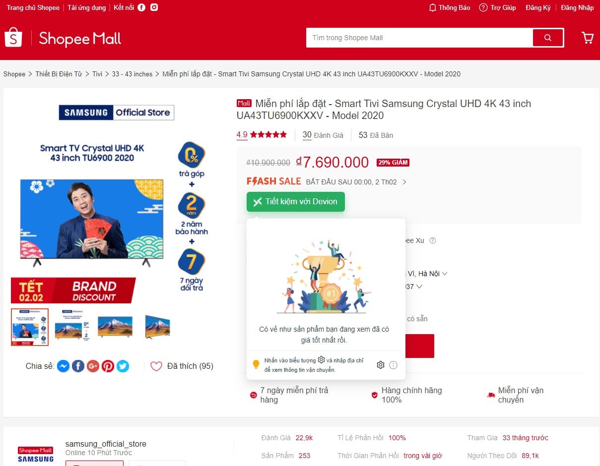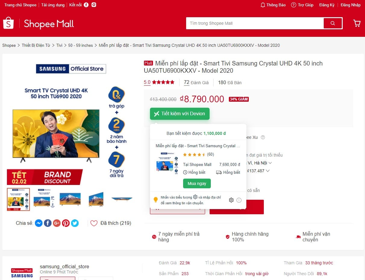 Devion sẽ giúp bạn tiết kiệm kha khá thời gian tìm tòi nhiều gian hàng, nhiều kênh để có được mức giá tốt. Khi mua hàng trên trang thương mại điện tử hãy để Devion trợ giúp bạn.