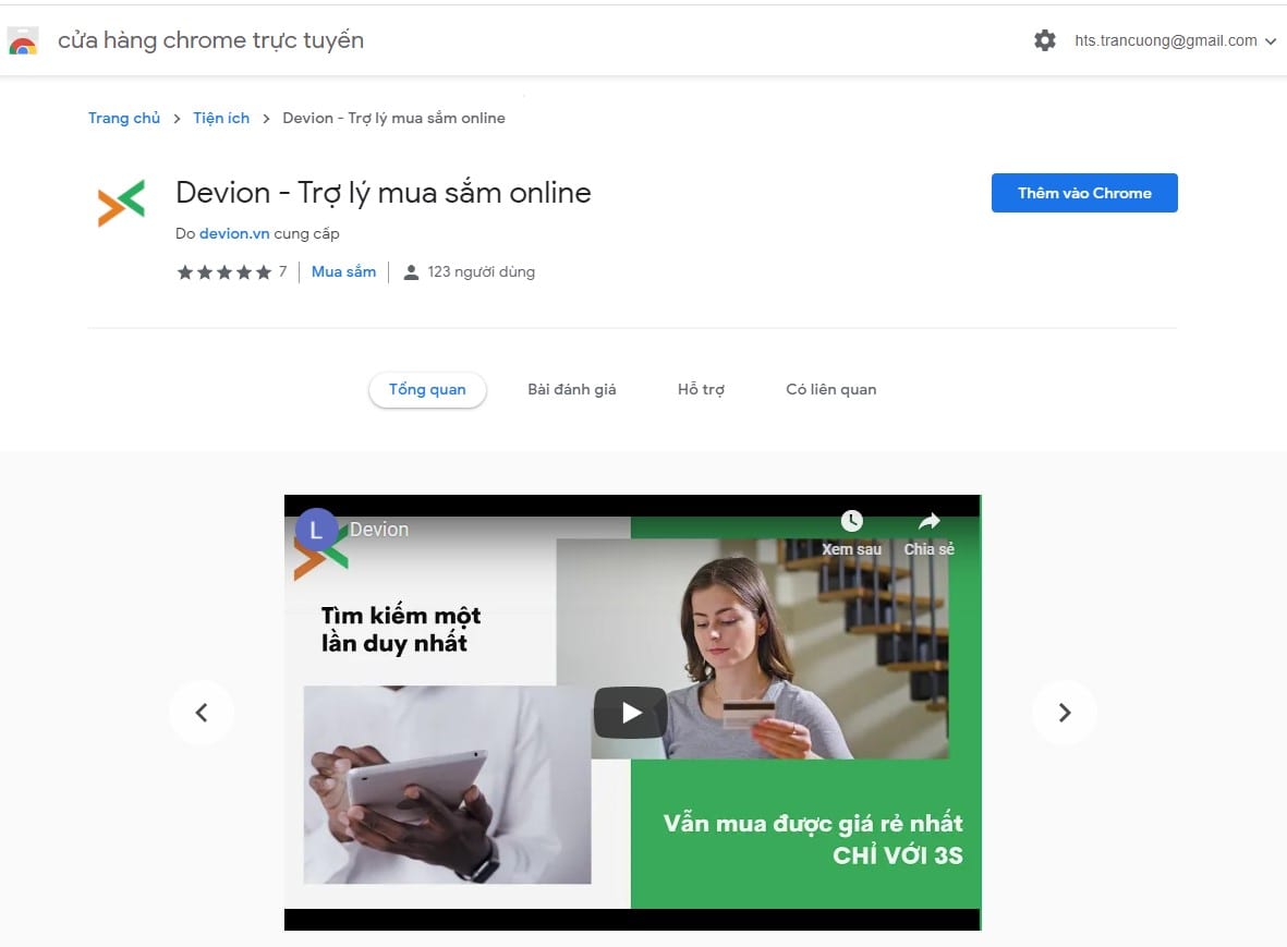 Devion khá nhẹ, chúng ta gần như không mất thời gian khi cài đặt, nó chỉ là một tiện ích mở rộng miễn phí dành cho trình duyệt Google Chorme, cài đặt là có thể bắt đầu sử dụng chứ không cần đăng kí tài khoản. Tải về tại đây bấm Thêm vào Chrome > Xác nhận thêm vào để tiến hành cài đặt tiện ích.