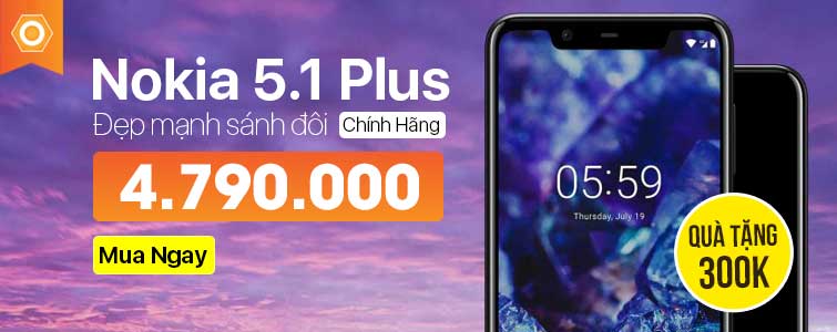 - Nokia 5.1 Plus chính hãng (RAM 3GB/ 32GB): 4.790.000vnđ