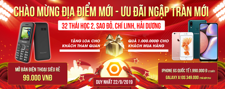 MỪNG ĐỊA ĐIỂM MỚI - ƯU ĐÃI NGẬP TRÀN: Đến là CÓ QUÀ, Điện thoại 99K, iPhone 6s QUỐC TẾ 1990K tại 32 Thái Học 2, Sao Đỏ, Chí Linh, Hải Dương. - Di Động Thông Minh