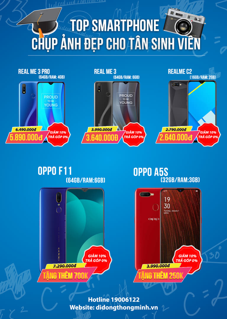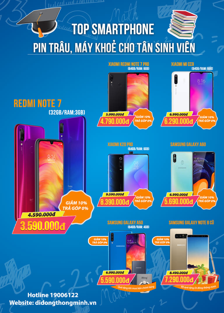 Bạn là thí sinh đã hoàn thành xong kỳ thi THPT Quốc gia năm 2019 và sắp trở thành tân sinh viên thì không thể bỏ qua cơ hội được tặng 1.000.000đ tiền mặt tại Di Động Thông Minh này. Ưu đãi chỉ dành cho 1.000 bạn mua hàng đầu tiên, mời các bạn theo dõi chi tiết thể lệ chương trình MỪNG TÂN SINH VIÊN, ĐIỂM CAO THƯỞNG LỚN nhé!