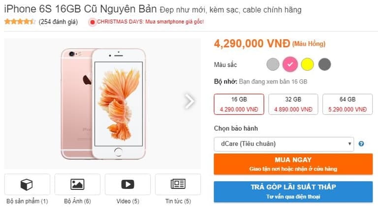 Do 2 sản phẩm iPhone 6 và iPhone 6S ra mắt đã lâu nên việc tìm được sản phẩm mới là rất khó và hiếm trên thị trường. Tại Di Động Thông Minh, iPhone 6 cũ quốc tế 16GB có giá từ 3.790K và iPhone 6S cũ quốc tế 16GB có giá từ 4.290K. Mức giá chênh lệch hiên tại giữa 2 sản phẩm này là không nhiều, tuy nhiên tùy vào ngân sách mà bạn có thể chọn sản phẩm phù hợp.