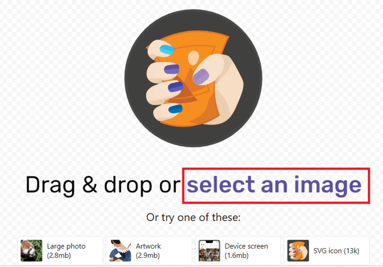 Bước 2: Tại giao diện trang bạn nhấn vào Select an image để tải ảnh cần chỉnh sửa lên trang chủ.