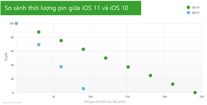 Tháng trước, Wandera – nhà cung cấp dịch vụ SaaS đã chạy phân tích dữ liệu trên 50.000 chiếc iPhone và thấy rằng những máy nâng cấp lên iOS 11 đều có thời lượng pin giảm trung bình 60%.
