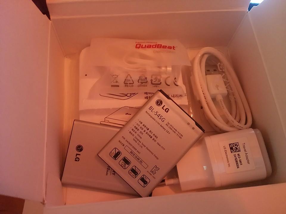 – Phụ kiện trong hộp gồm: Sạc 1.8A, cable, tai nghe Quadbeats 2, 02 pin, dock sạc – tương đương với bộ phụ kiện chuẩn của LG G2 Hàn Quốc Brandnew, tuy nhiên các viên pin có vẻ đã được sử dụng.
