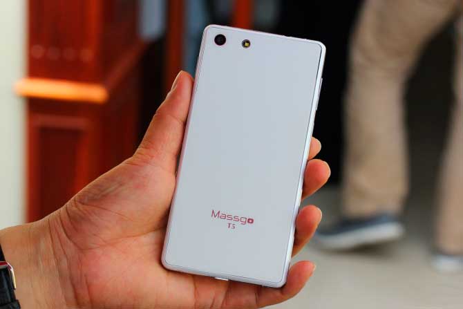 Sản phẩm đầu tiên chính là Massgo T5 cao cấp nhất với mức giá chỉ 3.490.000. Điện thoại Massgo T5 được trang bị màn hình IPS LCD 5 inch độ phân giải HD với công nghệ Full Lamination tức là lớp cảm ứng và tấm kính không còn khoảng cách vì vậy mà cho máy có trải nghiệm mượt mà khi lướt chạm và cho màu sắc hiển thị sống động, độ sáng tốt và góc nhìn rộng. Máy có thiết kế khung kim loại được gia công bằng thép không gỉ với những lát cắt kim cương tinh xảo vốn chỉ thấy trên những sản phẩm cao cấp đắt tiền. Mặt trước và sau là kính chống xước 2 lớp.