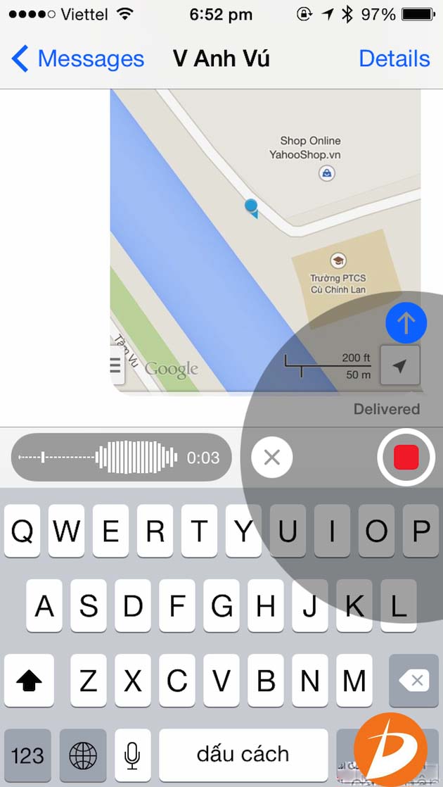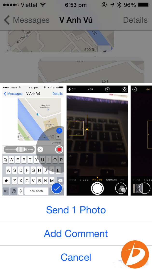 Ở ngay màn hình khóa, khi tin nhắn đến các bạn có thể trượt tin nhắn sang trái, chọn trả lời mà không phải mở khóa vào hẳn màn hình chính. Apple còn cho phép gửi đoạn Video trong imessage, nghĩa là chúng ta có thể quay một đoạn video mới hay gửi những đoạn Video đã quay sẵn. nhưng để đảm bảo tốc độ thì chỉ nên gửi những đoạn Video ngắn vài giây. Tính năng gửi tin nhắn âm thanh đã xuất hiện trên iOS 8 giống như các ứng dụng OTT từ lâu đã có như Zalo hay Viber. Để sử dụng thì các bạn chỉ cần giữ tay vào biểu tượng Mic ở khung chat và nói, sau khi nói xong, các bạn di ngon tay lên trên để gửi tin nhắn thoại hoặc di tay sang trái để hủy tin nhắn thoại.