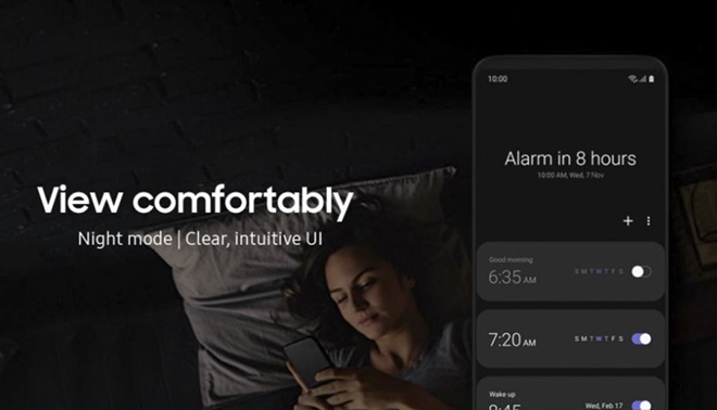 Một trong những thay đổi lớn trên lần cập nhật Android 9 trên Galaxy Note 9 đó là sự thay đổi về giao diện với việc Samsung bổ sung thêm giao diện ban đêm giúp thiết bị tiết kiệm pin hơn, đồng thời giảm thiểu tình trạng mỏi mắt khi sử dụng thời gian dài trong bóng tối.