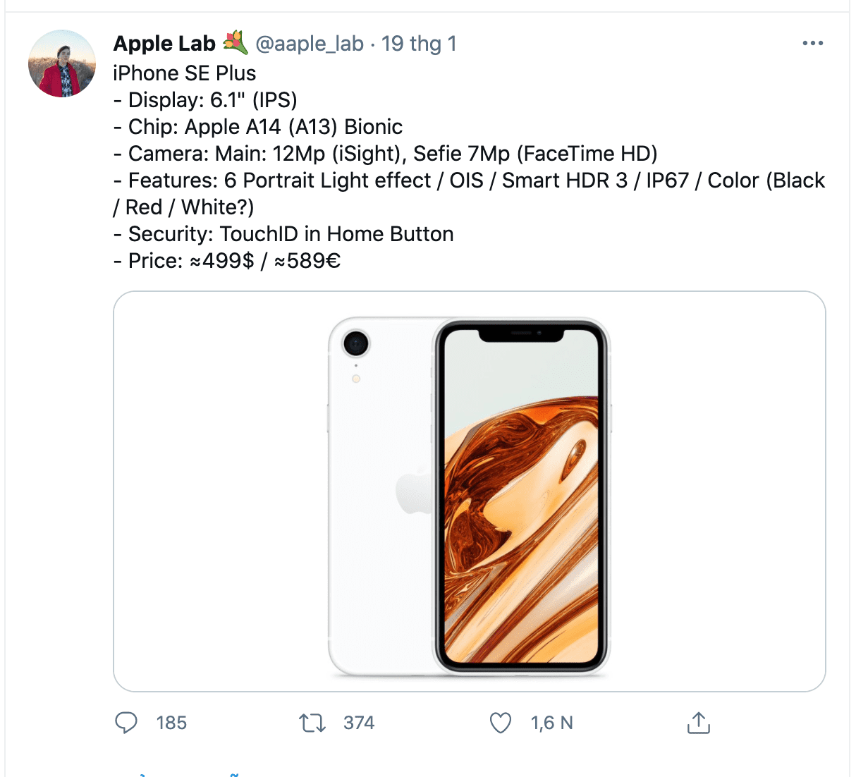 Về phía iPhone Se Plus thì mình có tìm hiểu được thông tin từ 1 người dùng twitter có tên Apple Lab, cho rằng chiếc máy này sẽ có kích thước màn hình là 6.1 inch. Rất có thể thiết kế iPhone SE năm nay cũng thiết kế mỏng và vuông vát tương tự như iPhone 12 series.