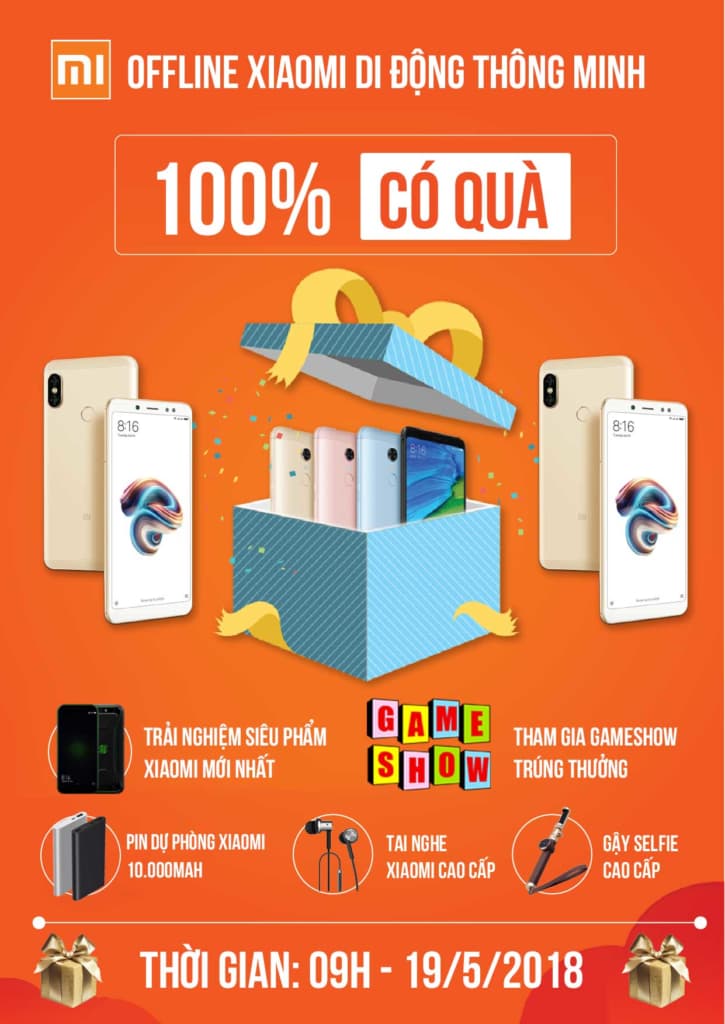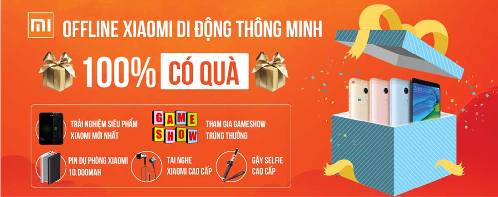 >> Tất cả các bạn tham gia đều dược miễn phí cafe, nước uống và đặc biệt 100% các bạn đến dự sẽ có quà, những phần quà lưu niệm đầy ý nghĩa như: Pin dự phòng Xiaomi 10.000mAh, 5.000mAh, Tai nghe cao cấp, gậy chụp ảnh, voucher giảm giá 100K, 200K, 300K khi mua Smartphone Xiaomi…