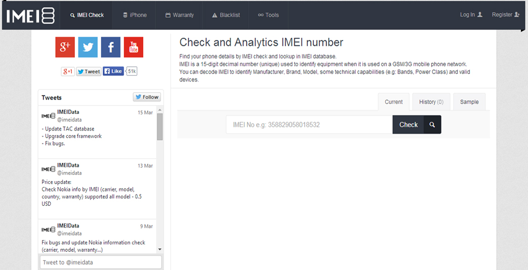 Cách 2: bạn có thể check qua trang web https://imeidata.net/