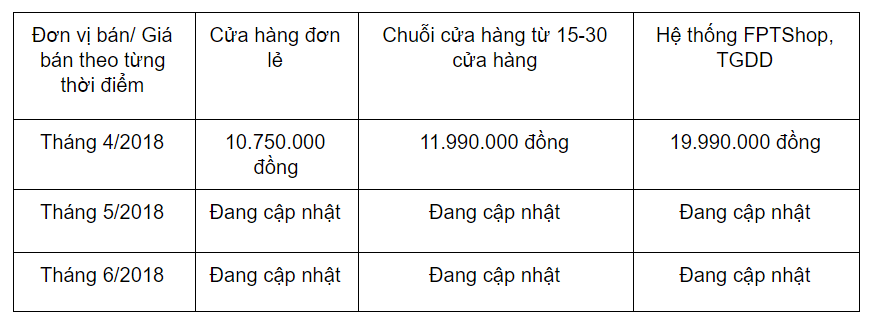 So sánh giá iPhone 7 Plus cũ theo từng thời điểm tại một số đơn vị bán hàng ( Sẽ được cập nhật theo tháng)
