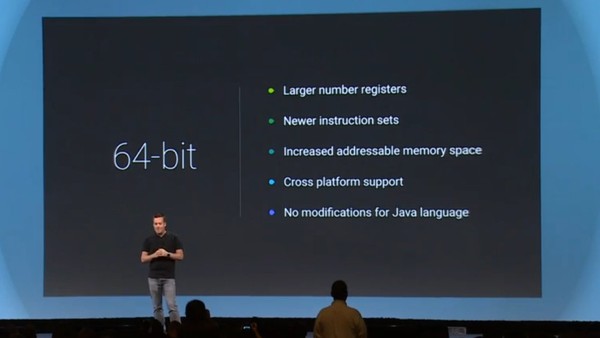 Được giới thiệu như một tính năng thử nghiệm trên Android 4.4, tại sự kiện đêm qua, bộ máy ảo ART đã chính thức được ra mắt để thay thế cho máy ảo Dalvik. Theo đó, ART hứa hẹn sẽ mang lại những cải thiện ấn tượng trong khả năng vận hành của toàn bộ hệ thống Android. Theo thực thế thử nghiệm bởi Google, ART mang lại tốc độ tương tác cao hơn gấp hơn lần hệ thống cũ, đồng thời ART cũng đã hỗ trợ 64-bit.