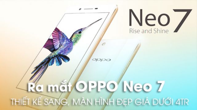 Về cấu hình, Neo 7 chỉ khiêm tốn với con chip tầm trung cùng Ram dung lượng 1Gb, bộ nhớ 16Gb có hỗ trợ thẻ nhớ ngoài. Máy chỉ hỗ trợ 1 SIM và máy sẽ có thêm phiên bản hỗ trợ mạng 4G LTE giúp tăng tốc độ internet hơn. Ngoài ra, Oppo Neo 7 sở hữu bộ đôi camera có độ phân giải cao với camera chính 8Mpx, cảm biến 1/4 cùng khẩu độ f2.0 có đèn Flash, camera trước 5Mpx hỗ trợ selfie tốt.