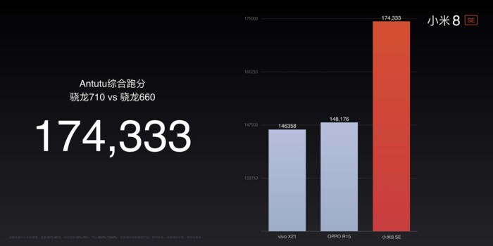 Về cấu hình, Xiaomi Mi 8 SE là chiếc smartphone đầu tiên trên thế giới được trang bị vi xử lý Snapdragon 710. Con chip này là con chip mạnh nhất ở phân khúc tầm trung vừa được Qualcomm giới thiệu.