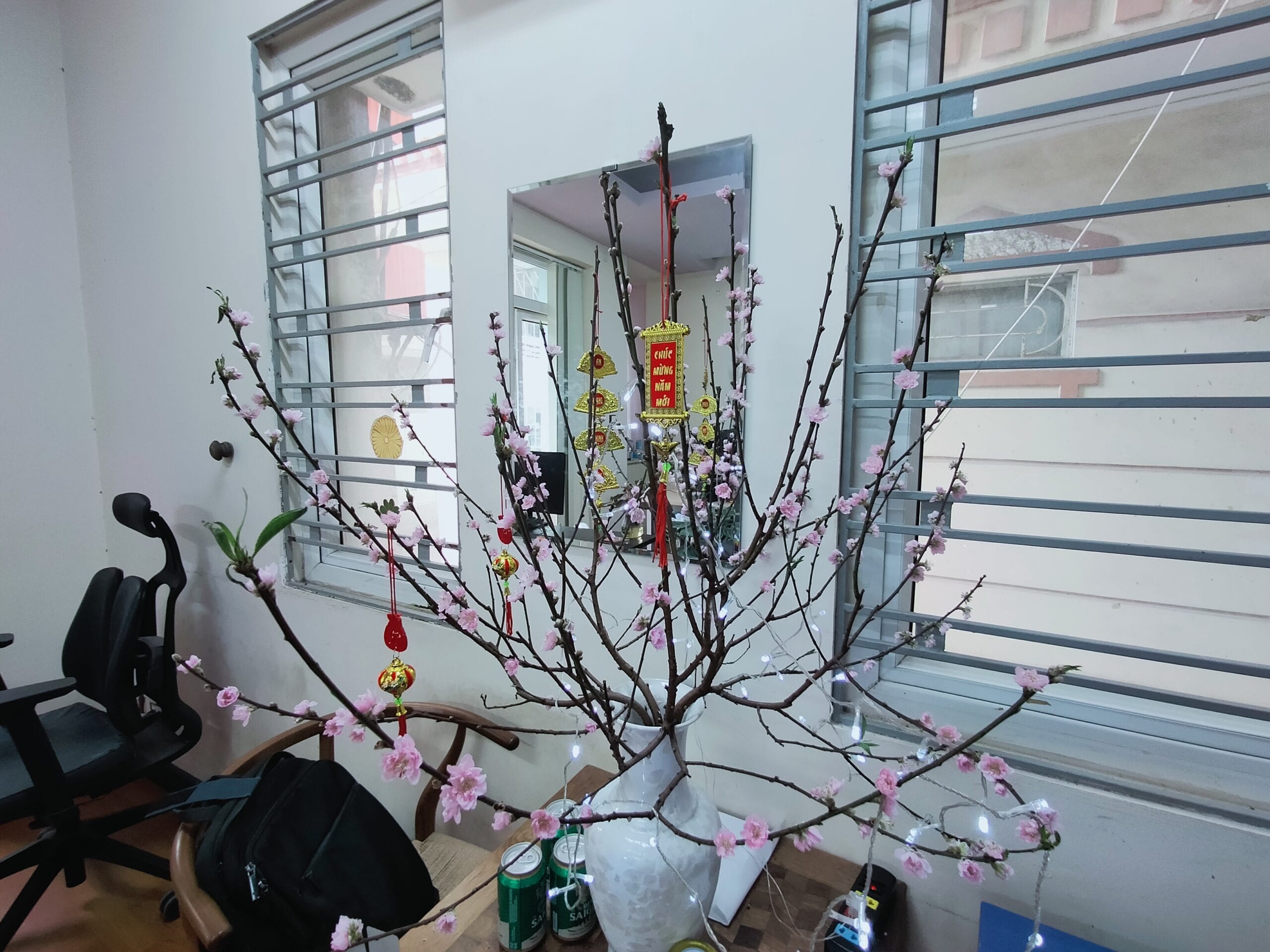 Camera chính 13MP cho ra màu sắc tươi, rực rỡ, cân bằng trắng chuẩn nên khá giống bên ngoài. Mình chụp mẫu trang trí Tết gắn trên cành đào thì phần màu đỏ, màu vàng lên rất chính xác, tuy vậy vì chụp trong điều kiện đèn ánh sáng trong nhà nên khi zoom lên đã có hiện tượng nhiễu hạt và mất chi tiết. Chúng ta cũng không thể đòi hỏi gì hơn ở một chiếc điện thoại chỉ có hơn 3 triệu đồng.