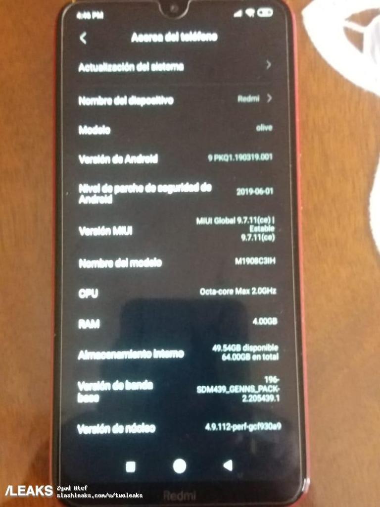 Bên cạnh thiết kế Redmi 8A, hình ảnh trên tay cũng thể hiện các thông số kỹ thuật của chiếc máy này, cho thấy Redmi 8A cũng sẽ được cung cấp sức mạnh bởi Snapdragon 439 SoC lõi tám – tiếp theo là 4GB RAM và 64GB dung lượng lưu trữ nội bộ . Thiết bị này cũng dự kiến sẽ xuất xưởng với hộp ngoài MIUI Global 9.7.1.