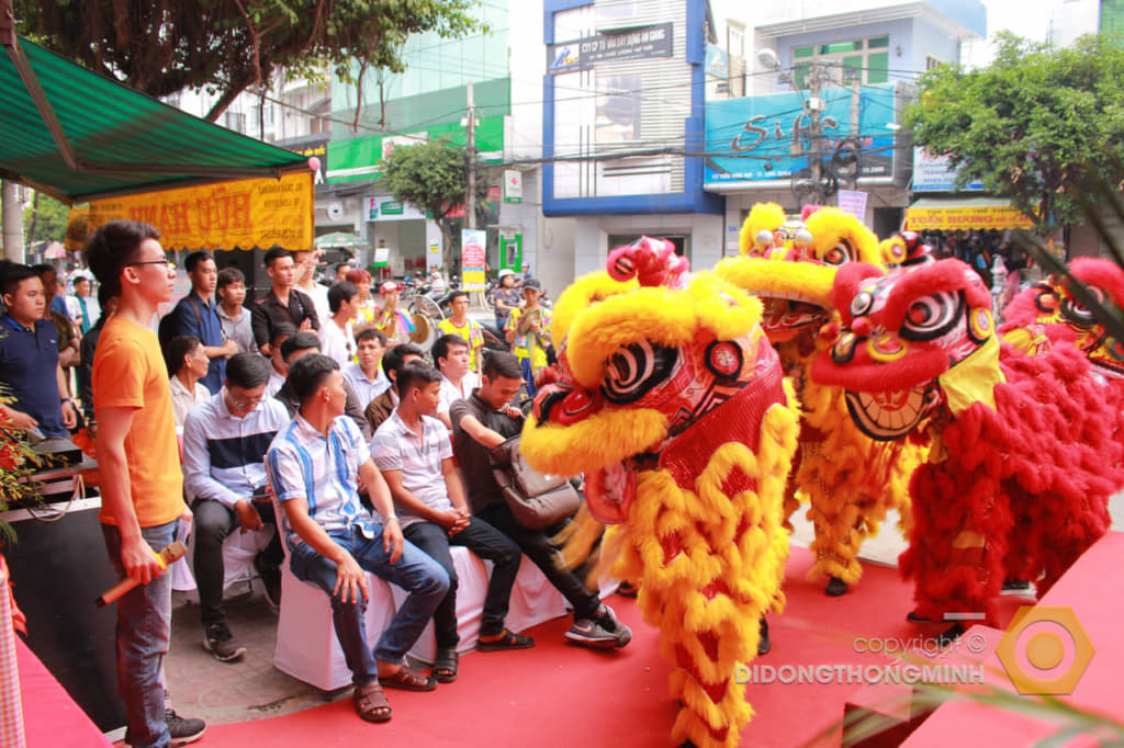 Hình ảnh múa lân trong buổi khai trương làm cho không khí càng thêm phần náo nhiệt