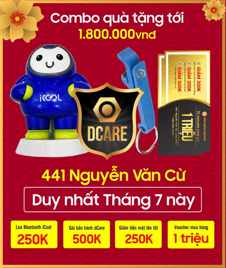 - Gói bảo hành vàng dCare+ trị giá 500.000vnđ