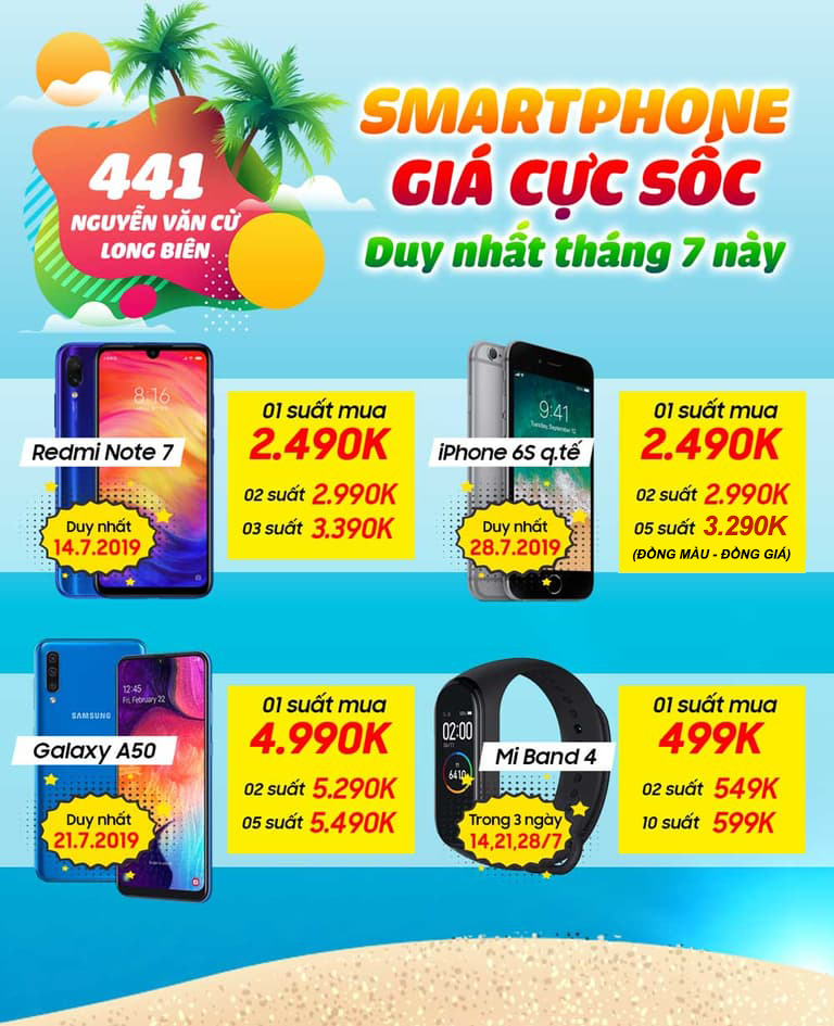 - Redmi Note 7, iPhone 6S q.tế chỉ 2.490K | Samsung A50 chính hãng chỉ 4.990K | Mi Band 4 chỉ 499K