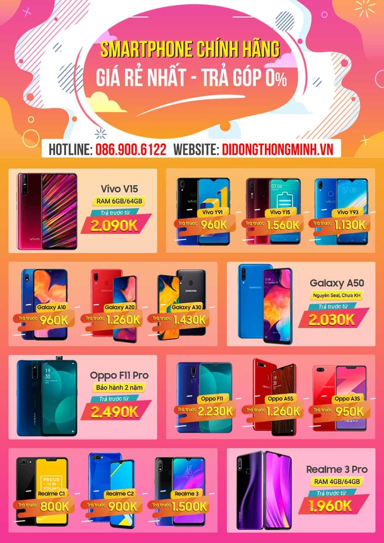 Tham khảo những Smartphone chính hãng giá rẻ nhất, hỗ trợ trả góp 0% tại Di Động Thông Minh