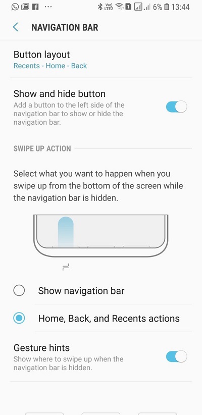 Những gạch ngang này cũng có thể bị vô hiệu hóa nếu bạn muốn (bằng cách chuyển đổi tùy chọn “Gesture hints”). Vấn đề duy nhất là nếu bạn bật các cử chỉ chính và ẩn thanh điều hướng, thanh điều hướng chỉ có thể được đưa trở lại bằng cách vào phần “cài đặt hiển thị” để điều chỉnh lại.