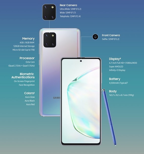 Chi tiết cấu hình bên trong Galaxy Note 10 Lite