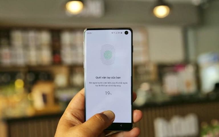 Cảm biến vân tay được đặt ở vị trí thuận lợi trên màn hình giúp người dùng mở khóa nhanh trong tích tắc. Galaxy S10 có cách thức đăng ký dấu vân tay cũng đơn giản, toàn bộ quá trình diễn ra chỉ chưa đến một phút. Ngoài ra, phương thức bảo mật bằng dấu vân tay giúp người dùng đỡ phải nhớ đến mật khẩu, mã pin… đồng thời góp phần làm cho phần thiết kế Galaxy S10 liền mạch hơn.