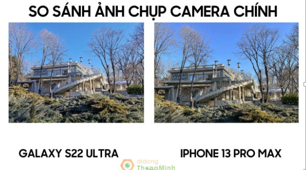 Nếu so sánh giữa Galaxy S22 Ultra và iPhone 13 Pro Max thì Galaxy S22 Ultra có phần nổi bật hơn, sắc nét và chi tiết hơn nhờ cảm biến 108MP, đồng thời cũng cho khả năng bù sáng tốt hơn.