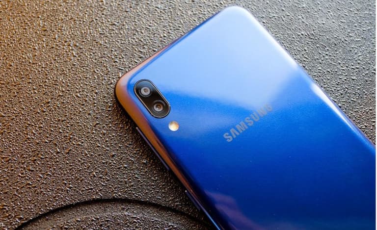 Samsung M10 sở hữu màn hình khuyết đỉnh hình giọt nước, camera kép có thể chụp góc rộng. Model này chỉ bán online tại Việt Nam với giá 2,8 triệu đồng.