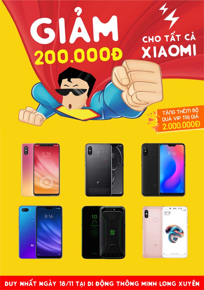 >> Giảm giá 200K cho tất cả Xiaomi Nhập khẩu duy nhất ngày 18/11/2018 tại CN Long Xuyên