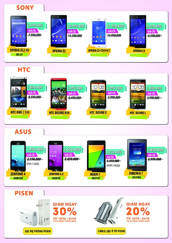 Mừng ngày Phụ nữ Việt Nam 20/10, siêu thị Di Động Thông Minh tưng bừng giảm giá hàng trăm sản phẩm smarphone cao cấp đang bán ra. Đặc biệt, tất cả khách đến tham quan và mua sắm tại hệ thống siêu thị Di Động Thông Minh từ Bắc vào Nam có cơ hội sở hữu những phần giá trị khuyến mại cực lớn.