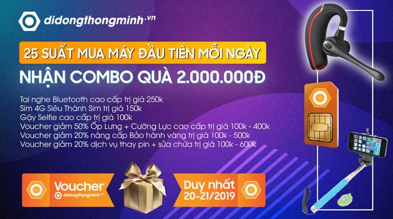 Trong 2 ngày diễn ra khuyến mại Di Động Thông Minh Long Xuyên sẽ dành ưu đãi 25 suất mua hàng sớm nhất mỗi ngày sẽ nhận được Combo quà tặng trị giá 2 triệu đồng cho các hoá đơn thanh toán trên 2 triệu chi tiết như sau: