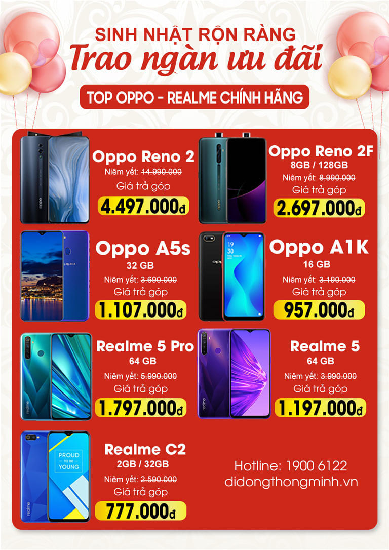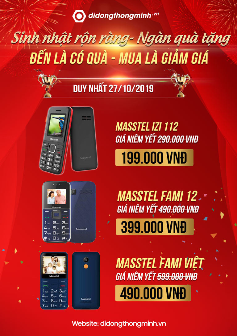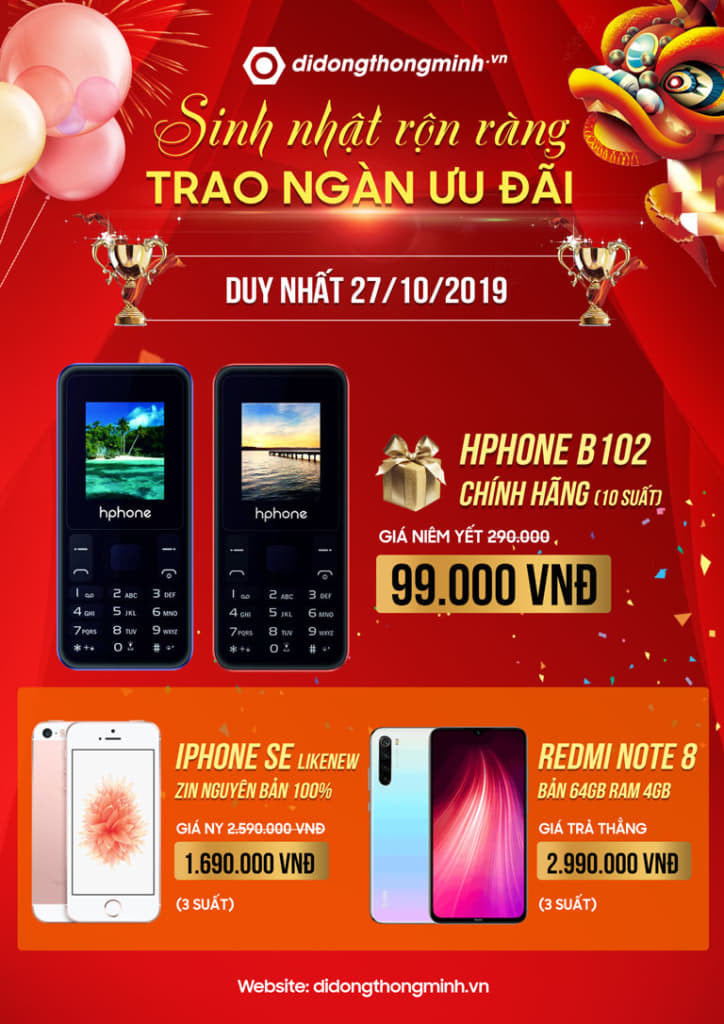 Trong ngày sinh nhật, các showroom Di Động Thông Minh tổ chức sinh nhật sẽ mở bán các sản phẩm điện thoại với giá cực sốc như sau: