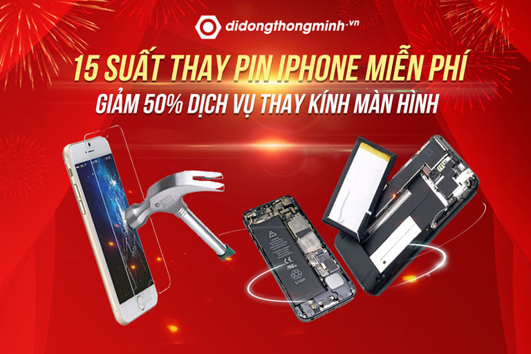 Nhằm tri ân tới đông đảo khách hàng nhân dịp sinh nhật, ngoài các ưu đãi khi thăm quan và mua sắm như trên, Di Động Thông Minh sẽ dành tặng quý khách hàng 15 suất thay Pin iPhone miễn phí cùng với ưu đãi giảm giá 50% các dịch vụ thay kính màn hình điện thoại.