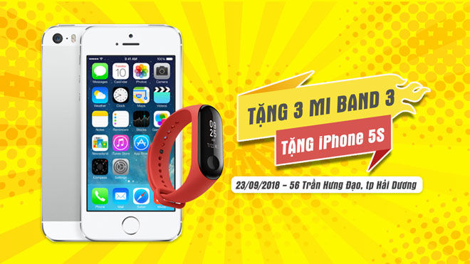 Duy nhất trong ngày 23/09/2018, tất cả khách mua hàng và khách tham quan tại Showroom 56 Trần Hưng Đạo, tp Hải Dương đều nhận được phiếu bốc thăm may mắn để có cơ hội trúng 3 chiếc Mi Band 3 (Mỗi vòng đeo tay trị gía 699K) và 1 chiếc iPhone 5S Lock 99% (Fix lỗi dùng như quốc tế không cần sim ghép) trị giá 1.990K.