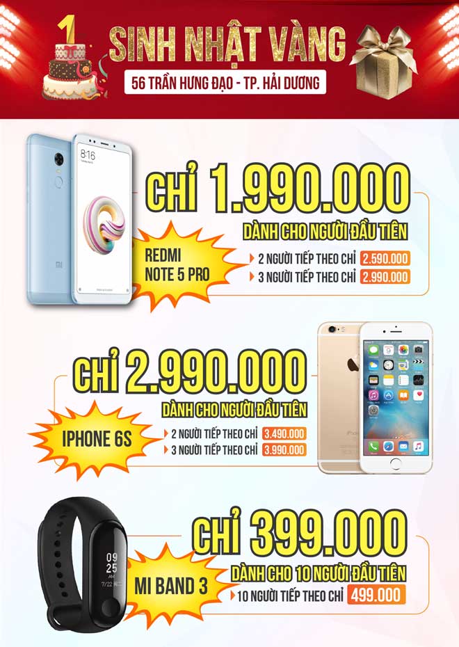 2. Siêu khuyến mãi bán không lãi – iPhone 6S giá 2.990K | Redmi Note 5 Pro giá 1.990K | Mi Band 3 giá 399K