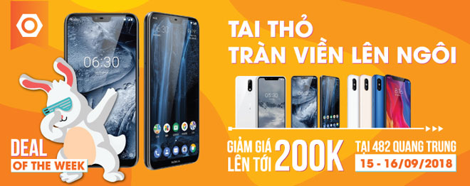 >> Duy nhất trong 2 ngày cuối tuần từ15/09 – 16/09/2018 tại Showroom 482 Quang Trung, 5 Smartphone tai thỏ trào lưu thời thượng sẽ được giảm giá tới 200K cho tất cả khách mua hàng chi tiết như sau: