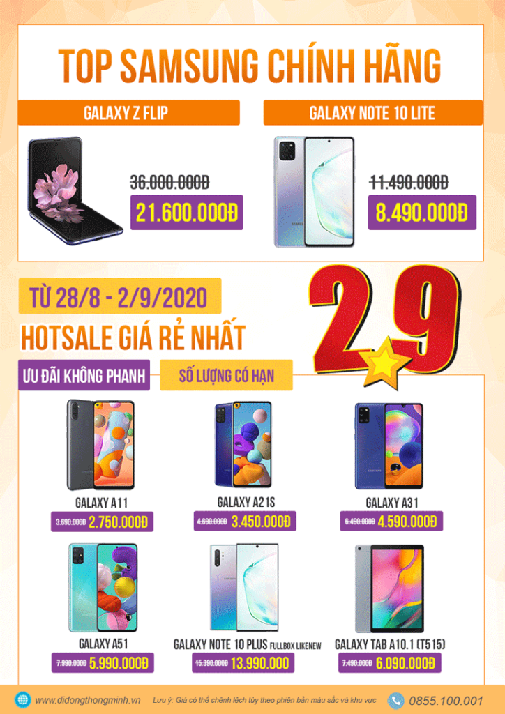 Samsung Chính hãng HOTsale giá rẻ nhất từ 28/8 – 02/9/2020 (số lượng có hạn).