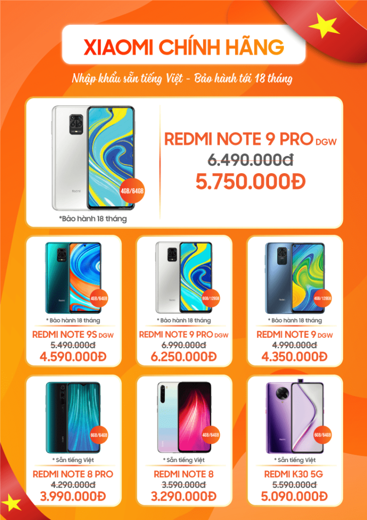 Trong không khí tưng bừng của ngày Đại lễ Quốc Khánh 2/9, Di Động Thông Minh xin trân trọng gửi tới quý khách hàng chương trình khuyến mại cực lớn. Tất cả các nhãn hàng đang bán chạy nhất như Samsung, Xiaomi, Oppo, Realme, iPhone đều giảm giá không phanh. Cụ thể: