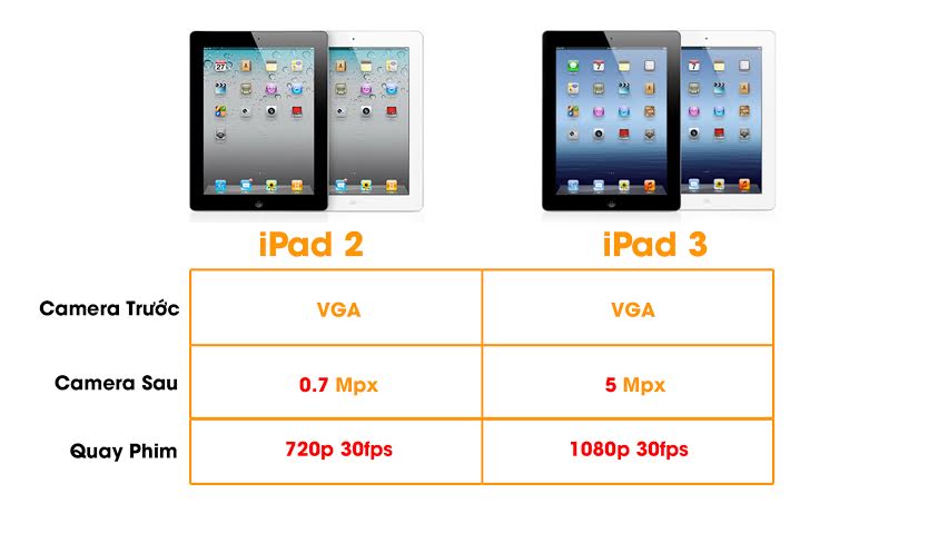4. Camera 5Mpx của ipad 3 cao hơn rất nhiều so với ipad 2