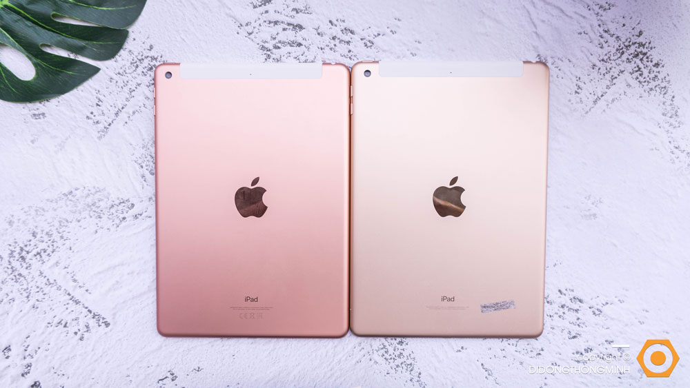 Do đây là phiên bản 4G + Wifi nên cả 2 máy đều có dải nhựa trắng phía sau giúp máy bắt sóng tốt hơn. Phía dưới máy vẫn là hệ thống 2 loa kép vô cùng sống động. Điểm khác biệt rõ ràng nhất trong thiết kế của iPad 2018 so với bản 2017 là iPad 2018 có thêm màu vàng hồng (rose gold) bên cạnh 3 màu giống như iPad 2017 là màu bạc, màu vàng và màu xám.