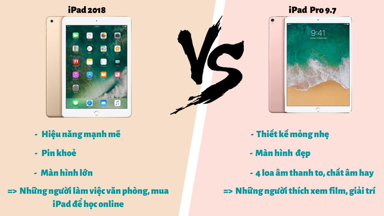 7 triệu nên mua iPad Pro 9.7 hay iPad 2018 là câu hỏi rất nhiều người đang phân vân . Vậy trong bài viết này, DĐTM sẽ so sánh chi tiết iPad Pro 9.7 và iPad 2018 trong năm 2020 để các bạn có thể lựa chọn được chiếc máy tính bảng đáp ứng trọn vẹn nhu cầu của các bạn khi bỏ ra 7 triệu nhé.