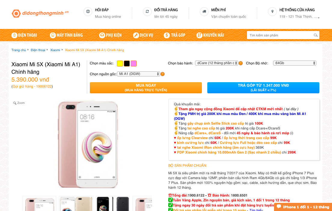 Tuy nhiên, bạn phải nhớ giá của 2 sản phẩm này đang chênh lệch nhau 500.000đ – 700.000đ, và nếu bạn nào thích Mi 5X, khi mua hàng ở Di Động Thông MInh vẫn có thể nâng cấp gói bảo hành dCare+ bảo hành cả nguồn và màn hình lên tới 15 tháng hoặc Gói bảo hành dCareS – bảo hành cả trong trường hợp rơi móp lên tới 18 tháng, nghĩa là nhiều hơn rất nhiều so với Mi A1 . Đặc biệt trong khi giá cho các gói bảo hành đều rất rẻ, chỉ từ 300K và chưa kể đến quyền lợi về thời gian đổi lỗi bao test sản phẩm lên tới 30 hoặc 45 ngày kể từ khi mua hàng, cũng cao hơn so với Xiaomi Mi A1 khi chỉ có 15 ngày.