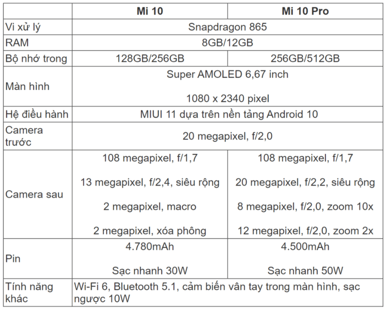 Giá bán Xiaomi Mi 10 – Mi 10 Pro