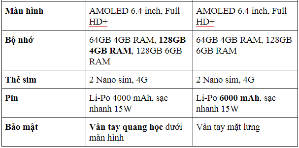 Hai máy đồng sở hữu màn hình giọt nước 6.4 inch thời thượng, công nghệ tấm nền AMOLED hiện đại cùng độ phân giải Full HD+ cho chất lượng hình ảnh hiển thị sắc nét, màu sắc sinh động và rực rỡ.