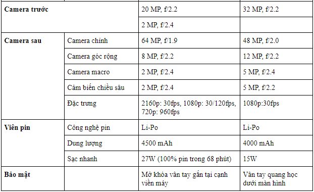 Qua bảng tổng hợp, bạn có thể thấy, ngoài các tính năng độc đáo rất riêng mà từng smartphone có được thì giữa hai siêu phẩm mới này còn chứa đựng nhiều điểm khác biệt về thông số kỹ thuật. Trong phần nội dung tiếp theo của bài viết này, chúng ta sẽ lần lượt so sánh Galaxy A51 và Redmi K30 một cách toàn diện nhé.