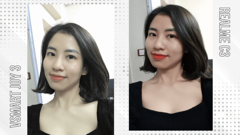 Camera trước ở chế độ chụp thường Realme C3 cho ảnh khá nịnh mắt màu ảnh tươi các chi tiết được xử lý mịn màng. Vsmart Joy 3 ảnh sẽ hơi ám vàng nhẹ, có hiện tượng bị bệt màu nhưng chi tiết thu lại được khá tốt.