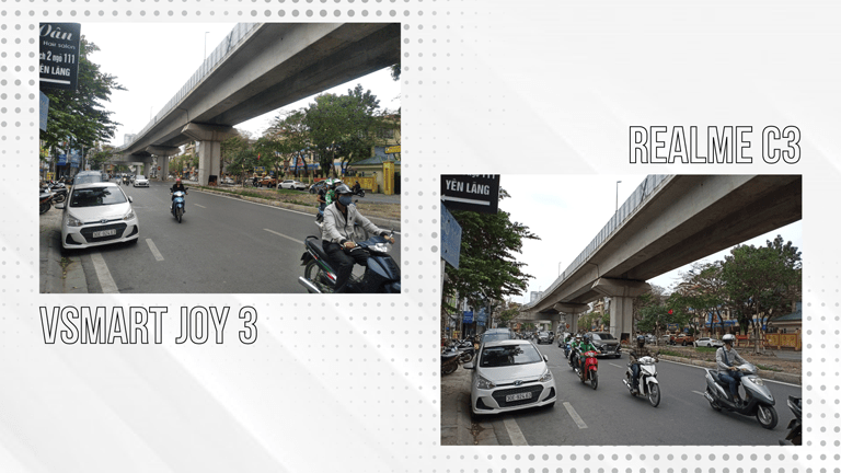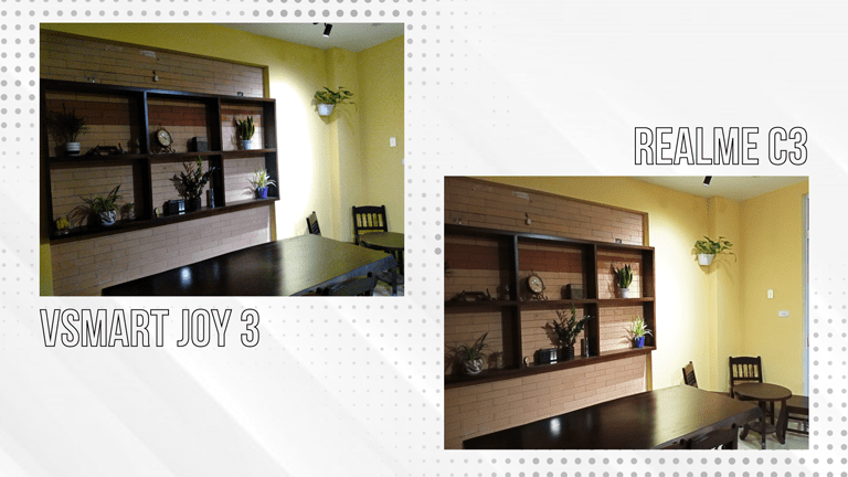 Chụp trong điều kiện thiếu sáng Realme C3 xử lý ảnh tốt hơn, ảnh được thu sáng cũng như chi tiết được kéo lại ở mức khá. Còn chiếc Vsmart Joy 3 ảnh khá noise, màu sắc trong ảnh cũng bị sai so với thực tế.